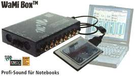 der WaMi Box lassen sich professionelle Mehrspur-Audio-Aufnahmen und komplette professionelle Musikproduktionen auf dem Laptop verwirklichen. Mit WaMi Box verwandelt sich ein Notebook in ein mobiles digitales Aufnahmestudio. Der Traum von der ortsunabhängigen Produktion ist Wirklichkeit geworden - durch WaMi Box. Windows